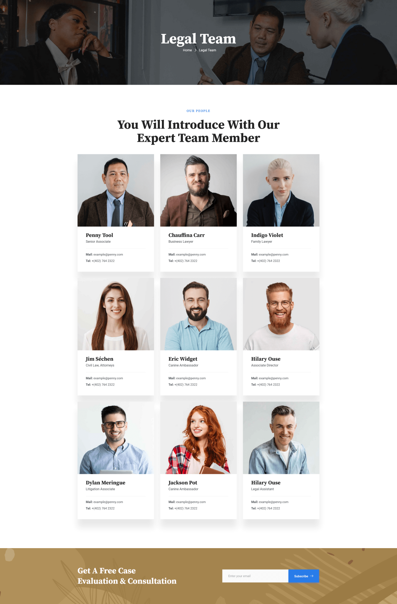 Legal Team Home Legal Team Our People You will introduce with our expert team member A small river named Duden flows by their place and supplies it with the necessary Phone:+1 (859) 254-6589 Email:[email protected] Penny Tool Senior Associate Mail: [email protected] Tel: +(402) 764 2322 A small river named Duden flows by their place and supplies […]