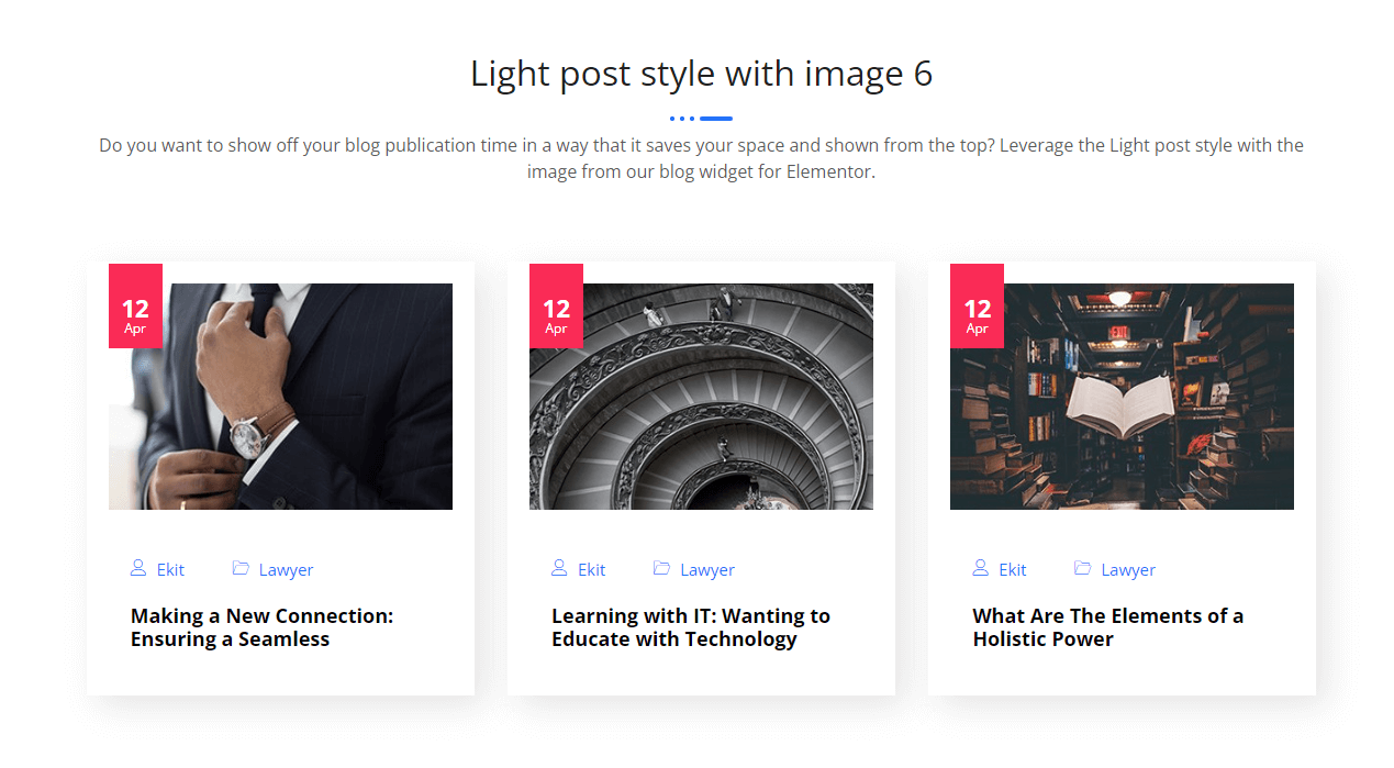 Light post style with image 6 Do you want to show off your blog publication time in a way that it saves your space and shown from the top? Leverage the Light post style with the image from our blog widget for Elementor. 26Jan mdrakibul Uncategorized Conquering Peaks and Embracing Mountain 26Jan mdrakibul Uncategorized The […]