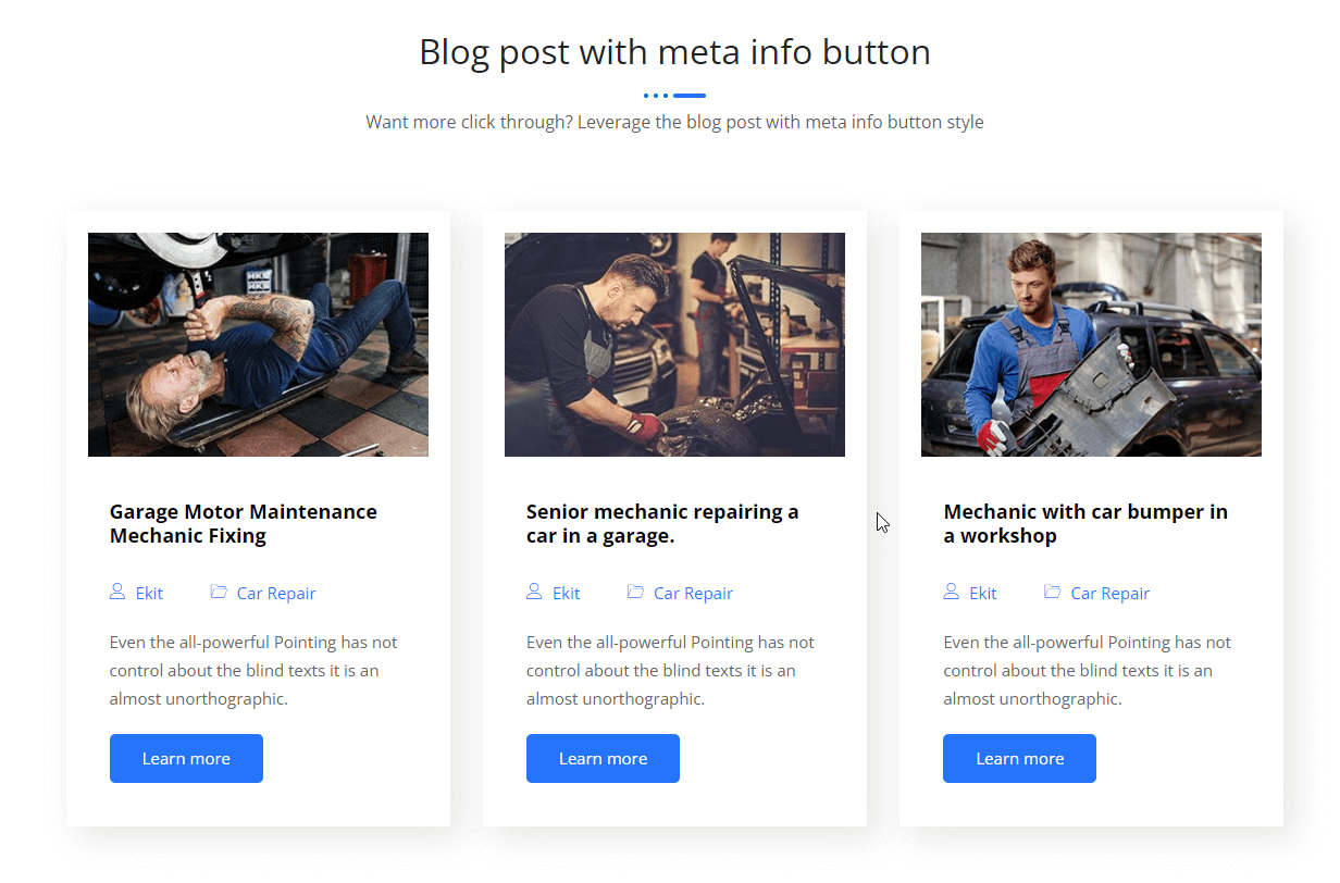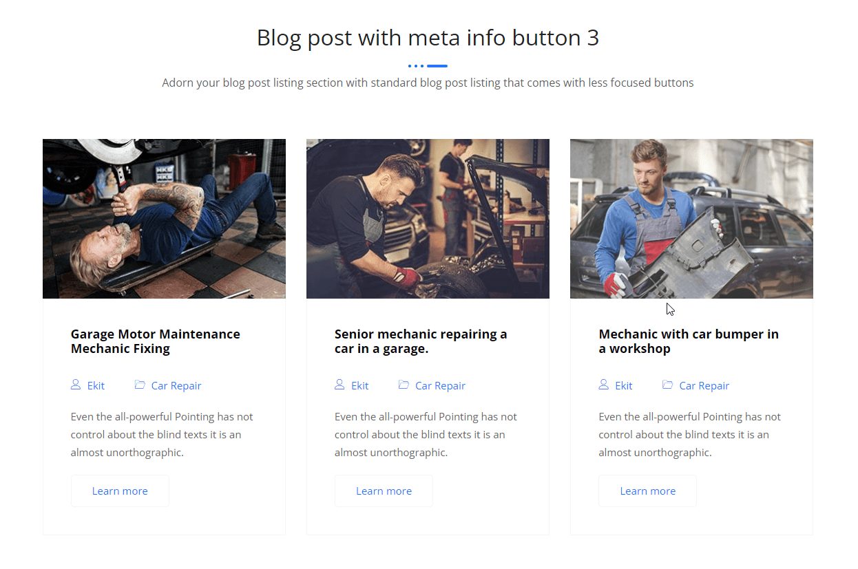 Blog post with meta info button 3 Adorn your blog post listing section with standard blog post listing that comes with less focused buttons Conquering Peaks and Embracing Mountain mdrakibul Uncategorized Learn more The Thrills and Spills of Skydiving Adventures mdrakibul Uncategorized Learn more The Wonders of Underwater Exploration mdrakibul Uncategorized Learn more