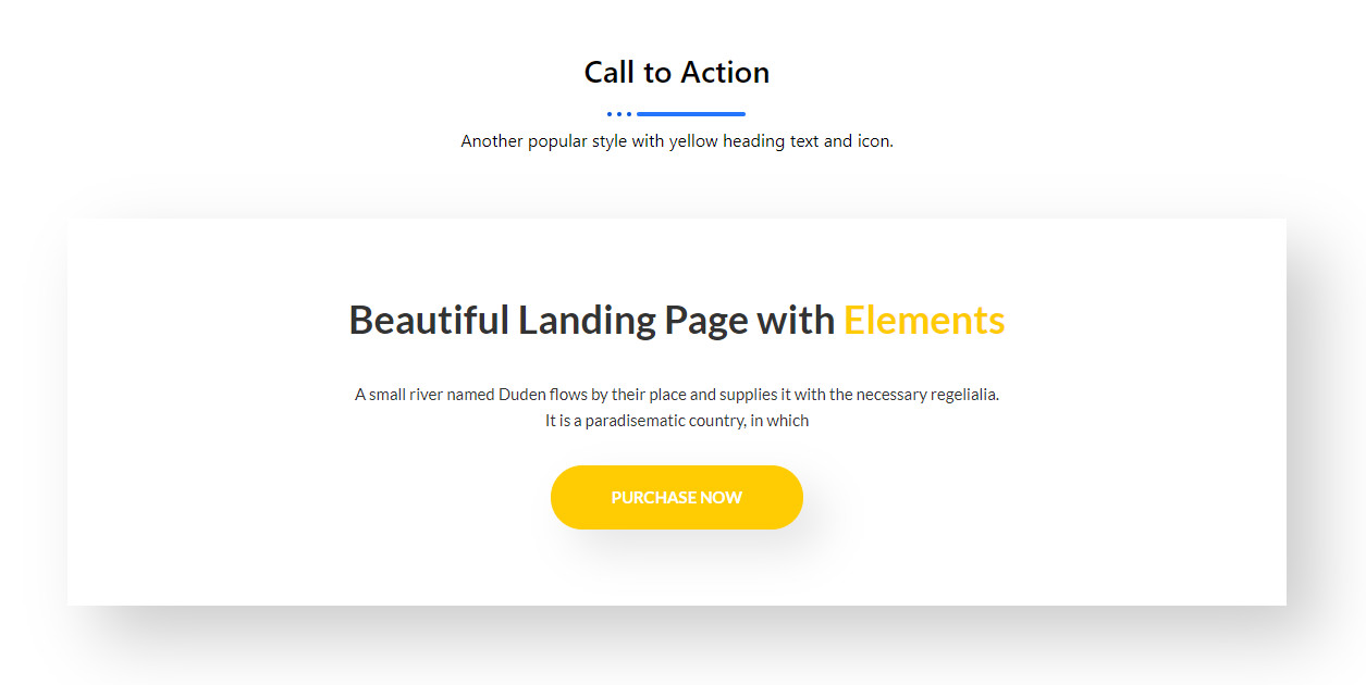 Call to Action Another popular style with yellow heading text and icon. Beautiful Landing Page with Elements A small river named Duden flows by their place and supplies it with the necessary regelialia. It is a paradisematic country, in which Purchase now