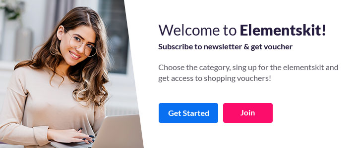 Choose the category, sing up for the elementskit and get access to shopping vouchers!